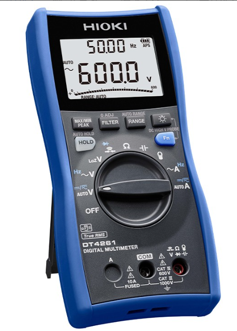 交流电流600.0 mA〜10.00 A, 3档量程, 基本確度40 Hz - 500 Hz : ±1.4 % rdg. ±3 dgt. (真有效值, 波峰因数3以下)频率